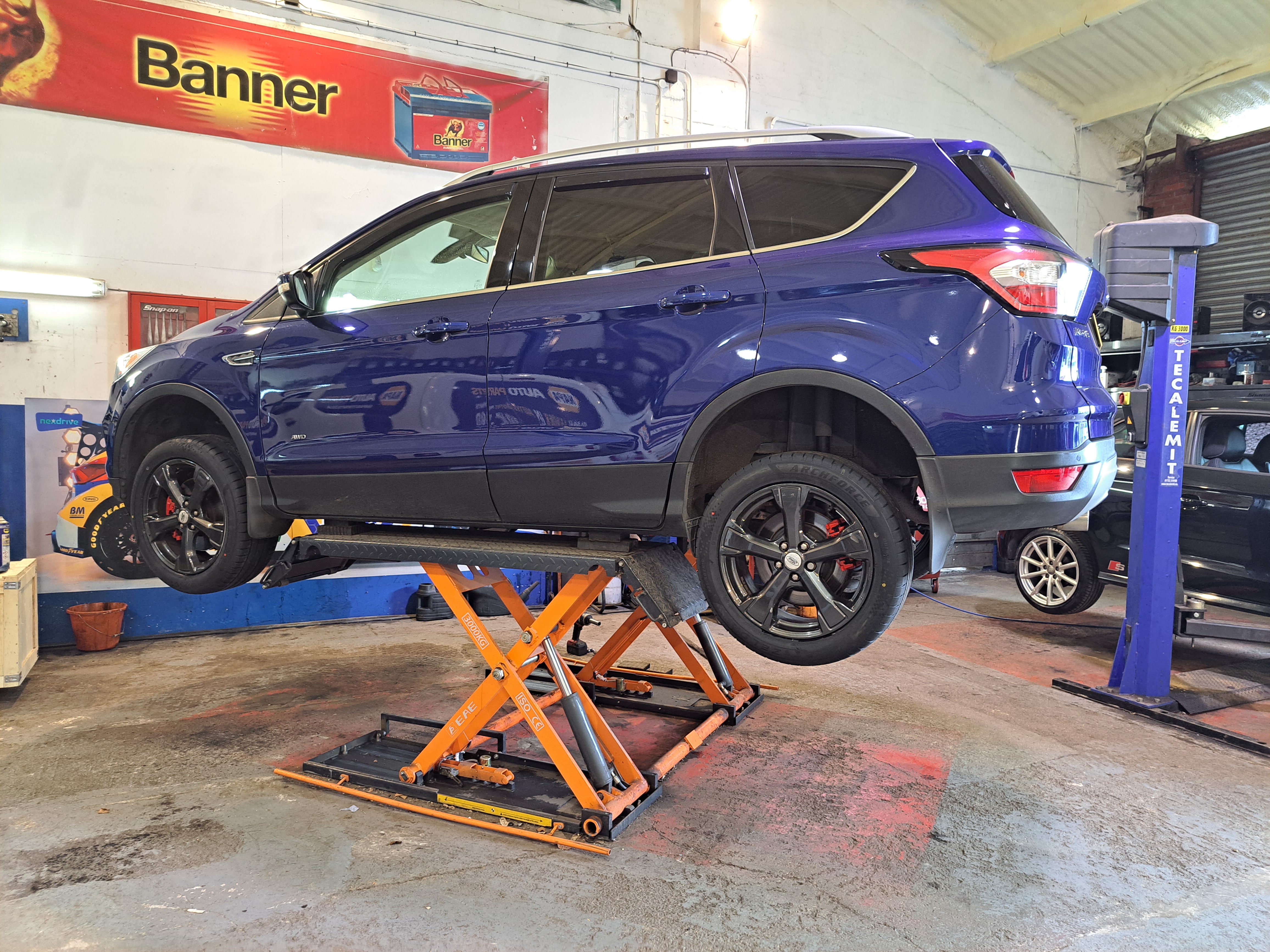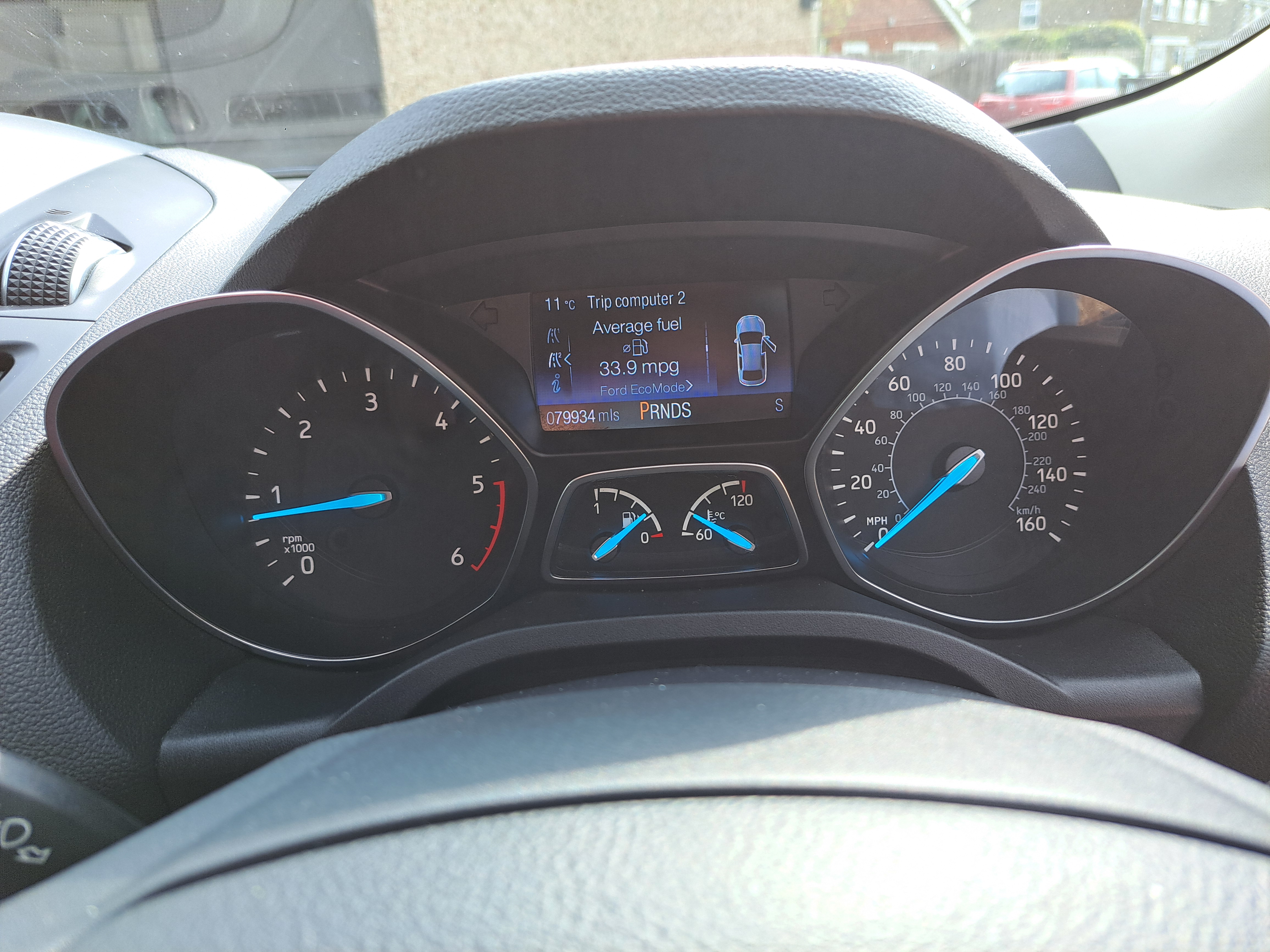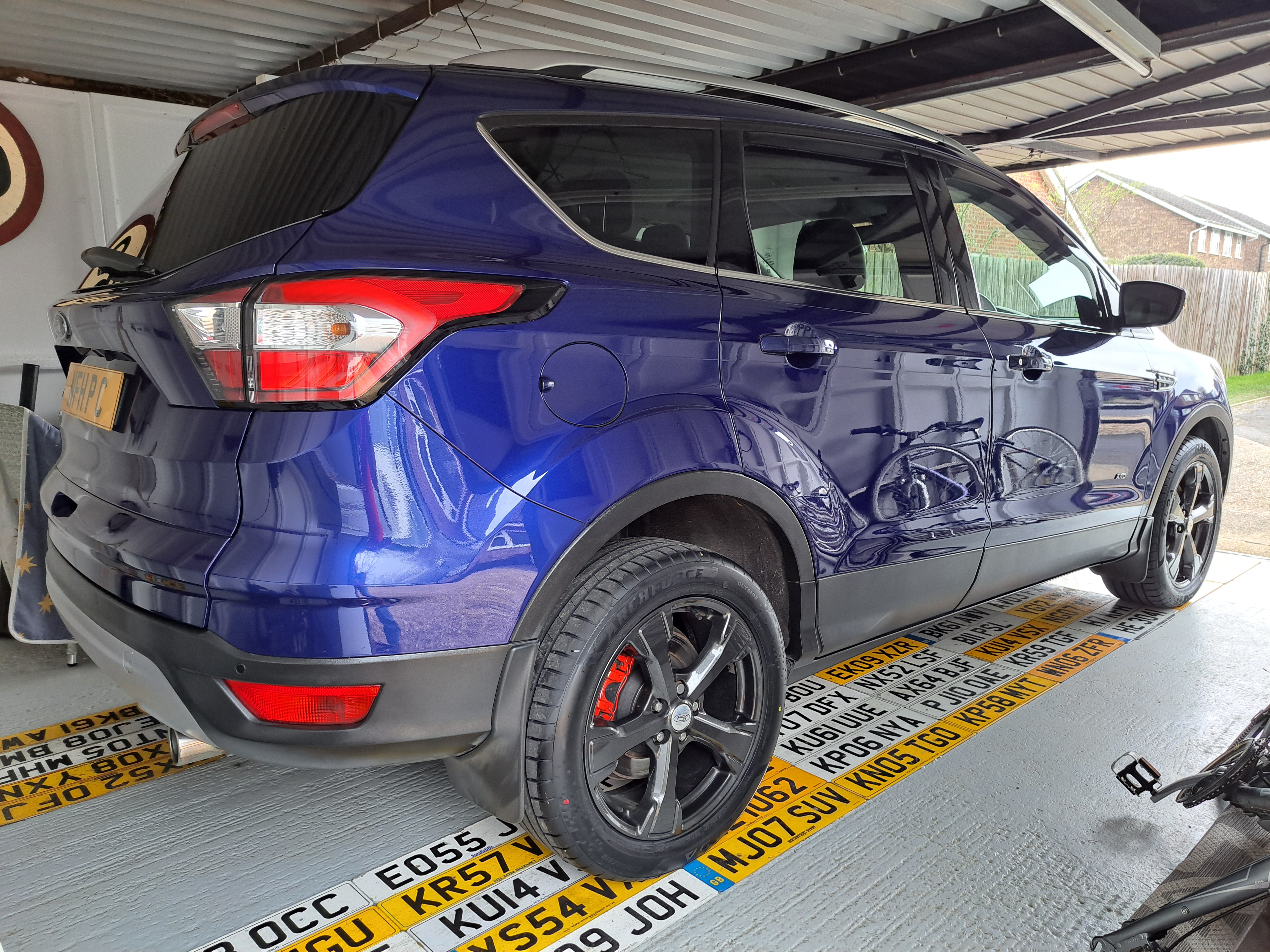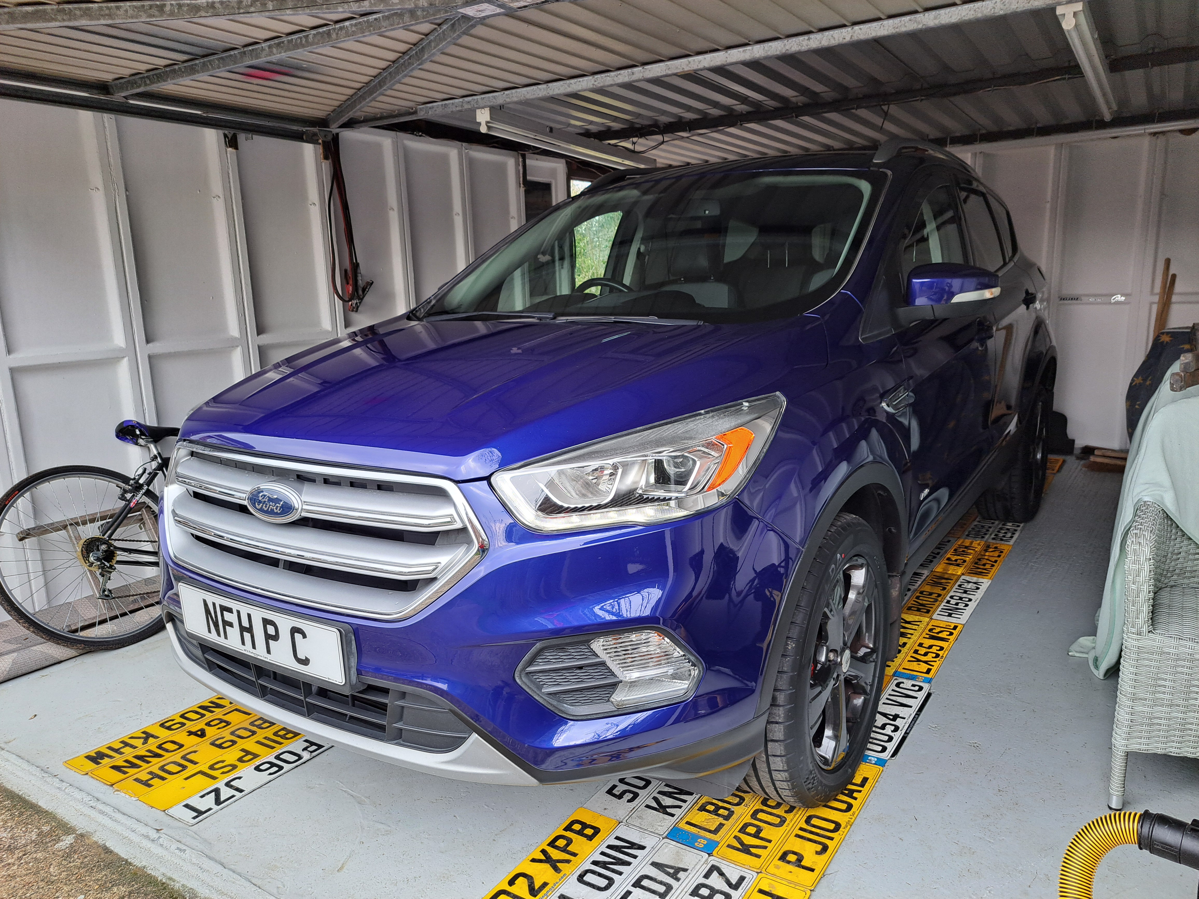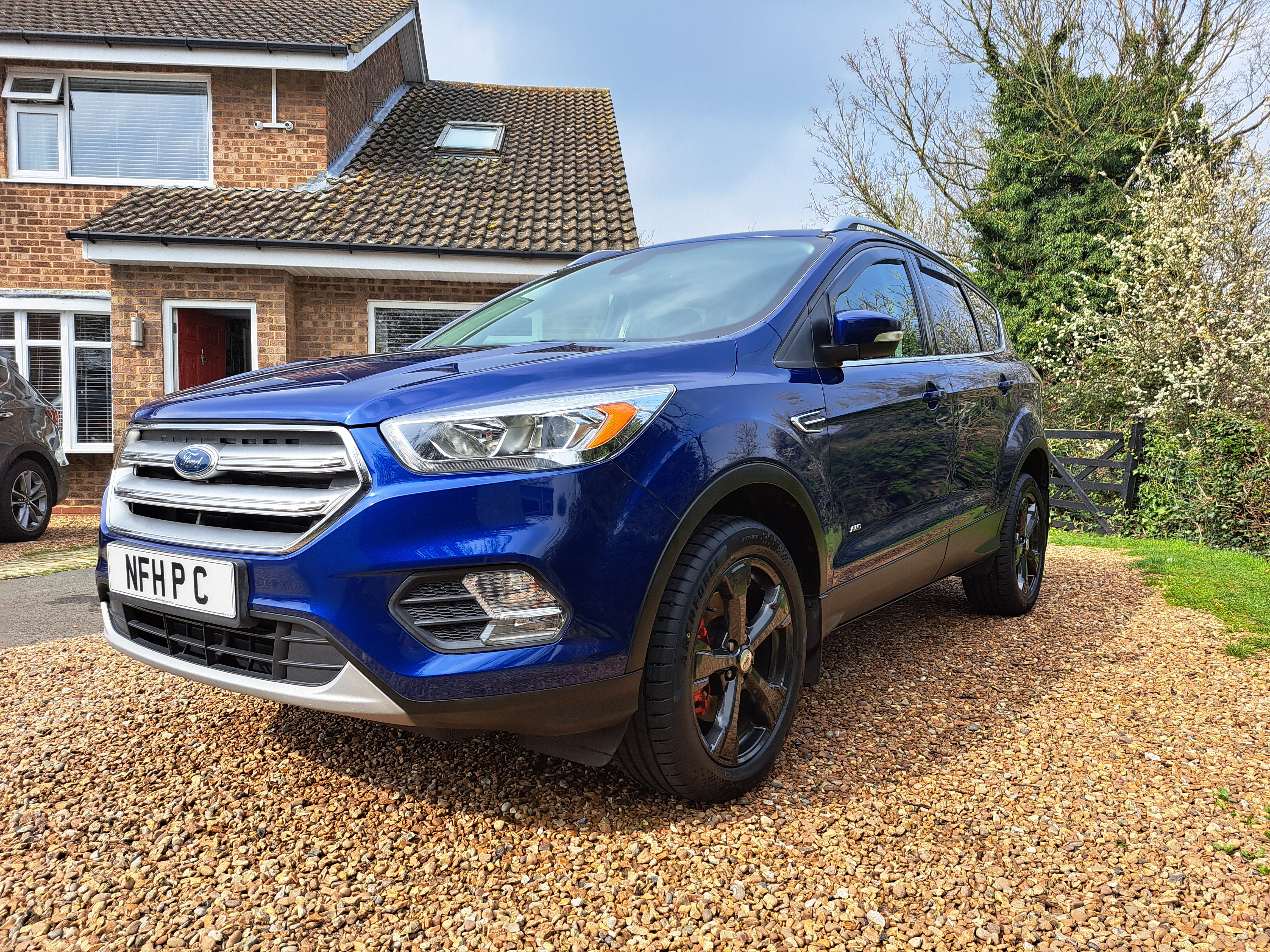 This immaculate Kuga has covered 79,930 miles with FULL MAIN DEALER SERVICE HISTORY. Just serviced last week, including 4 new tyres. 2 non-smoking owners from new, the latter, since 2019. It is in just stunning condition, gleaming, unmarked Deep Impact Blue, paintwork, spotless interior, with front & rear cover carpets over untouched carpets, unmarked, 18″ Anthracite alloys with brand new tyres. It drives faultlessly, I have done over 100 miles in it, it is an absolute pleasure to drive. Being the Titanium 180, it comes with: KEYLESS ENTRY (2 working fobs + manual key) .. PUSH BUTTON START/STOP .. AUTO LIGHTS .. START/STOP with HILL ASSIST .. ELEC FRONT & REAR WINDOWS with REAR PRIVACY GLASS .. REAR PARKING CAMERA .. REAR PARKING SENSORS .. BI-FOLD, ELECTRIC, HEATED MIRRORS ..ELEC, AUTO RELEASE HANDBRAKE .. DUAL DIGITAL CLIMATE CONTROL .. HEATED SCREENS .. FRONT & REAR WIND DEFLECTORS .. 6 SPEED AUTO, POWERSHIFT with SPORT MODE & PADDLES .. MULTI FUNCTION SPORT LEATHER WHEEL .. CRUISE CONTROL .. D.A.B, SYNC, ENTERTAINMENT, INFO CENTRE with SAT-NAV, BLUETOOTH, VOICE CONTROL & ALL PORTS .. PART LEATHER .. MULTI AIRBAGS .. ISOFIX CHILD SEAT FIXING .. F&R FITTED COVER CARPETS etc. This really is a superb vehicle in every way. PART EXCHANGE WELCOME .. 6 MONTHS RENEWABLE WARRANTY, ROADSIDE ASSISTANCE INCLUDED.